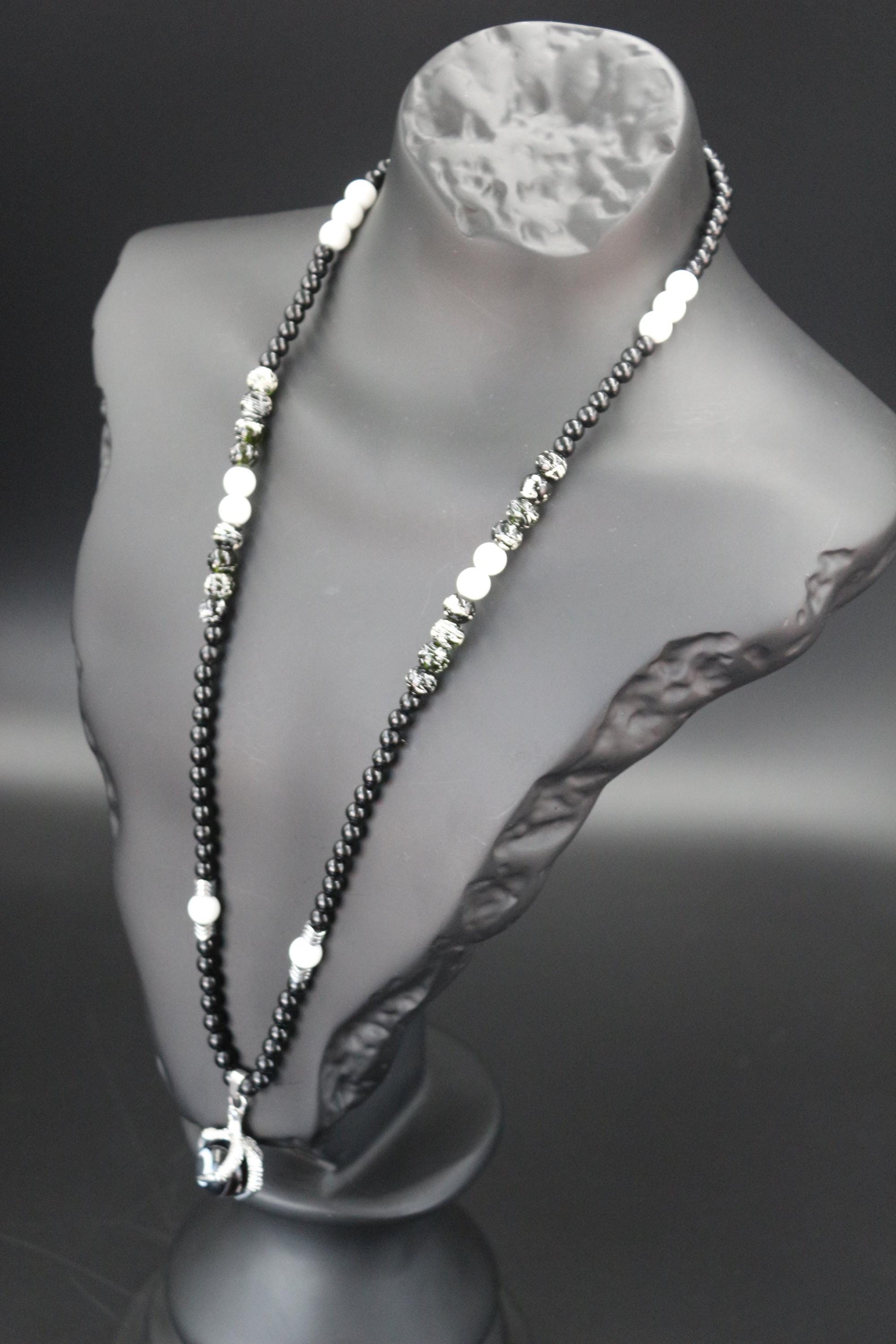 Beads: The necklace consists of a strand of black beads, which may be made of onyx or black agate.