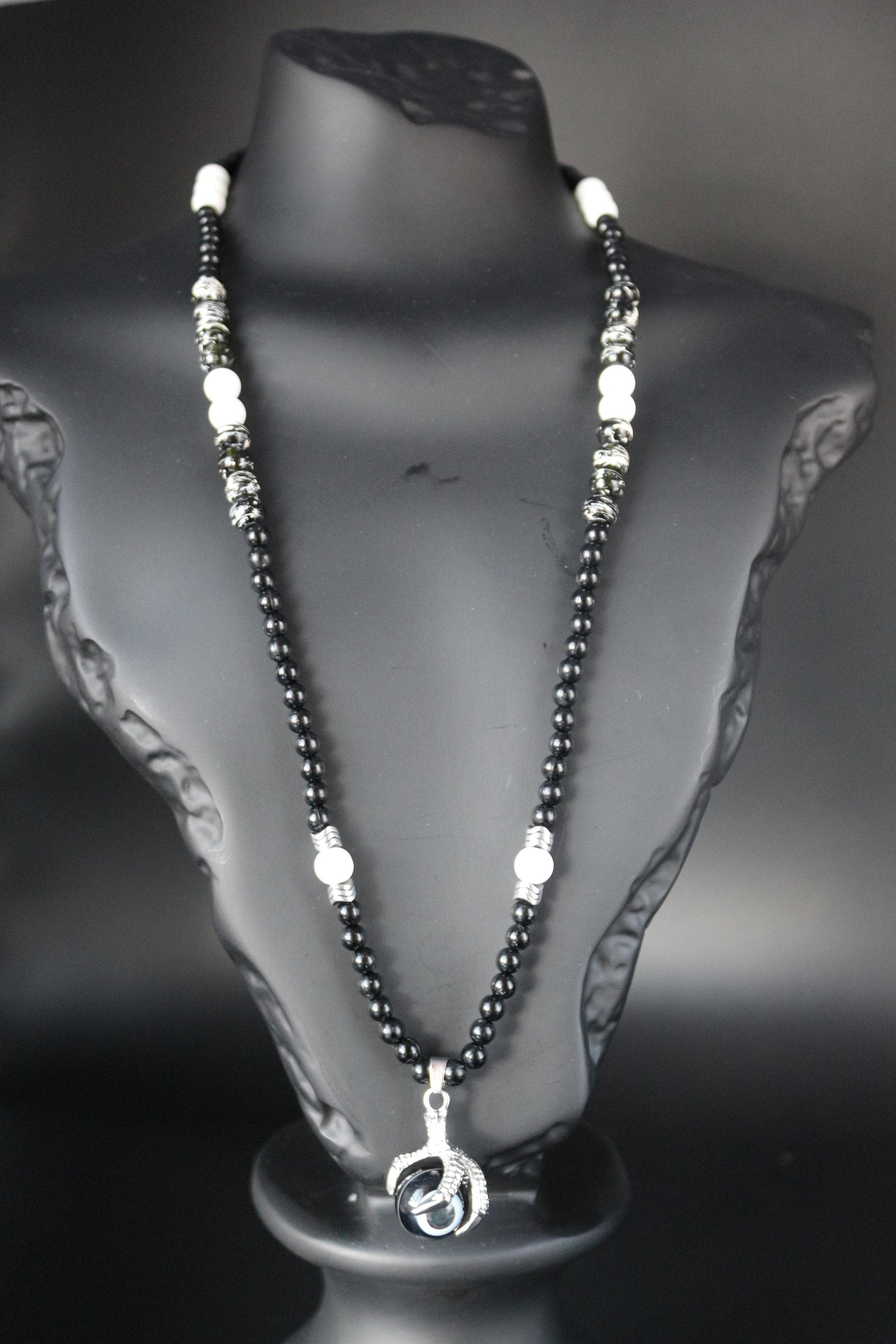 Black Agate Necklace - Handmade, Natural Stone in Eagle Claw