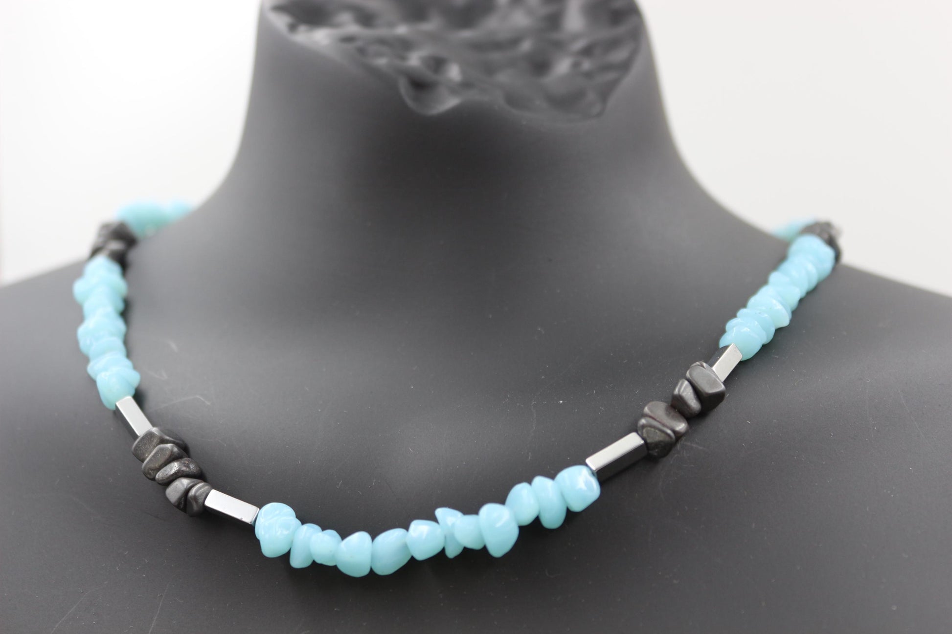 Handmade Aquamarine and Hematite Necklace – Stylish Natural Stone Design, Unisex