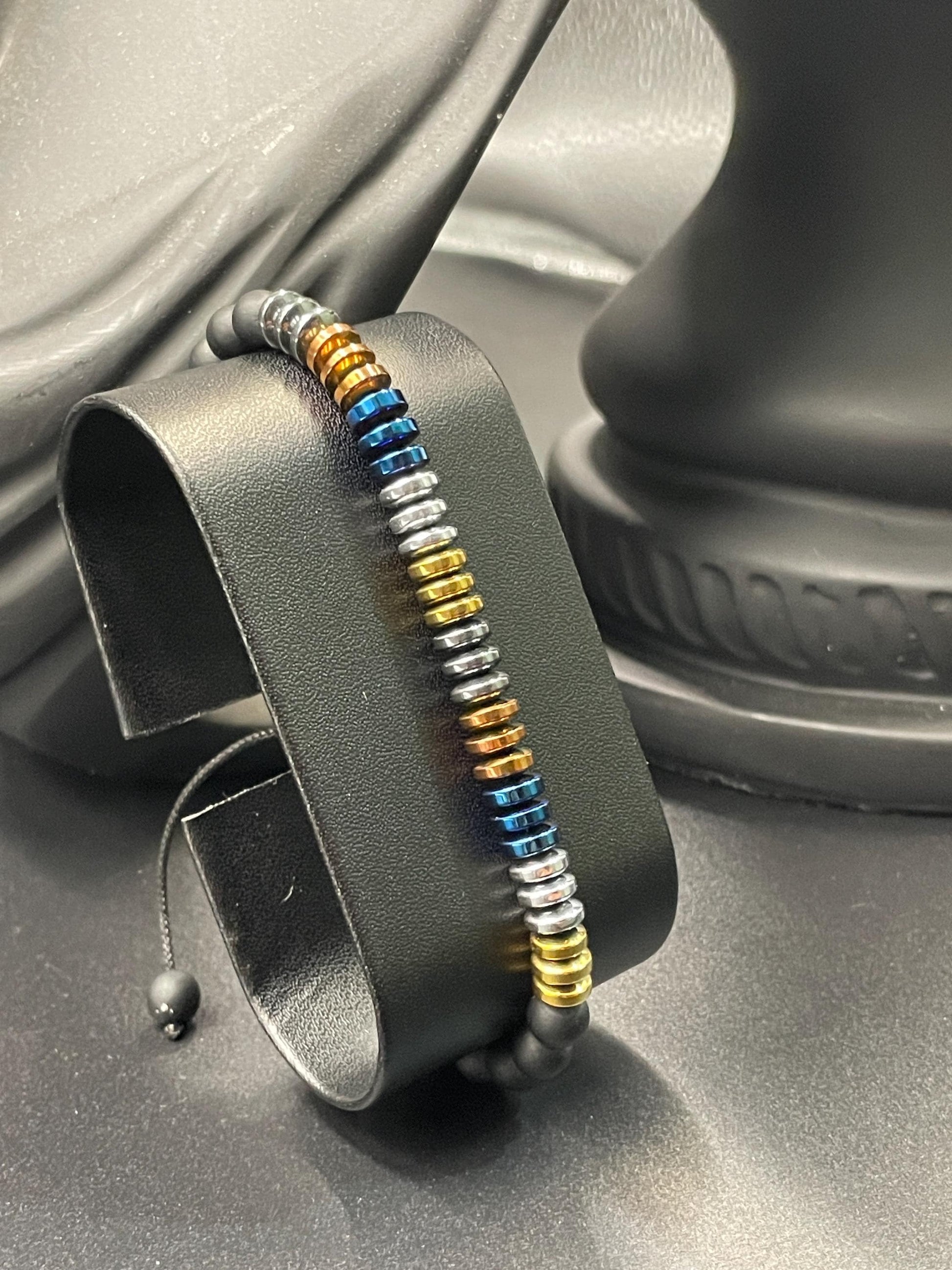 This 5-color hematite bracelet blends natural energy with modern style. Each color holds symbolic meaning: