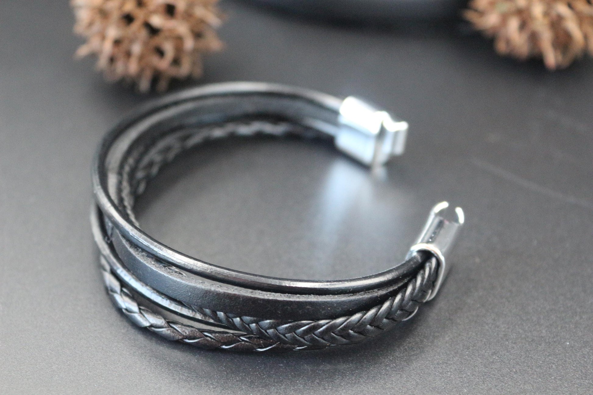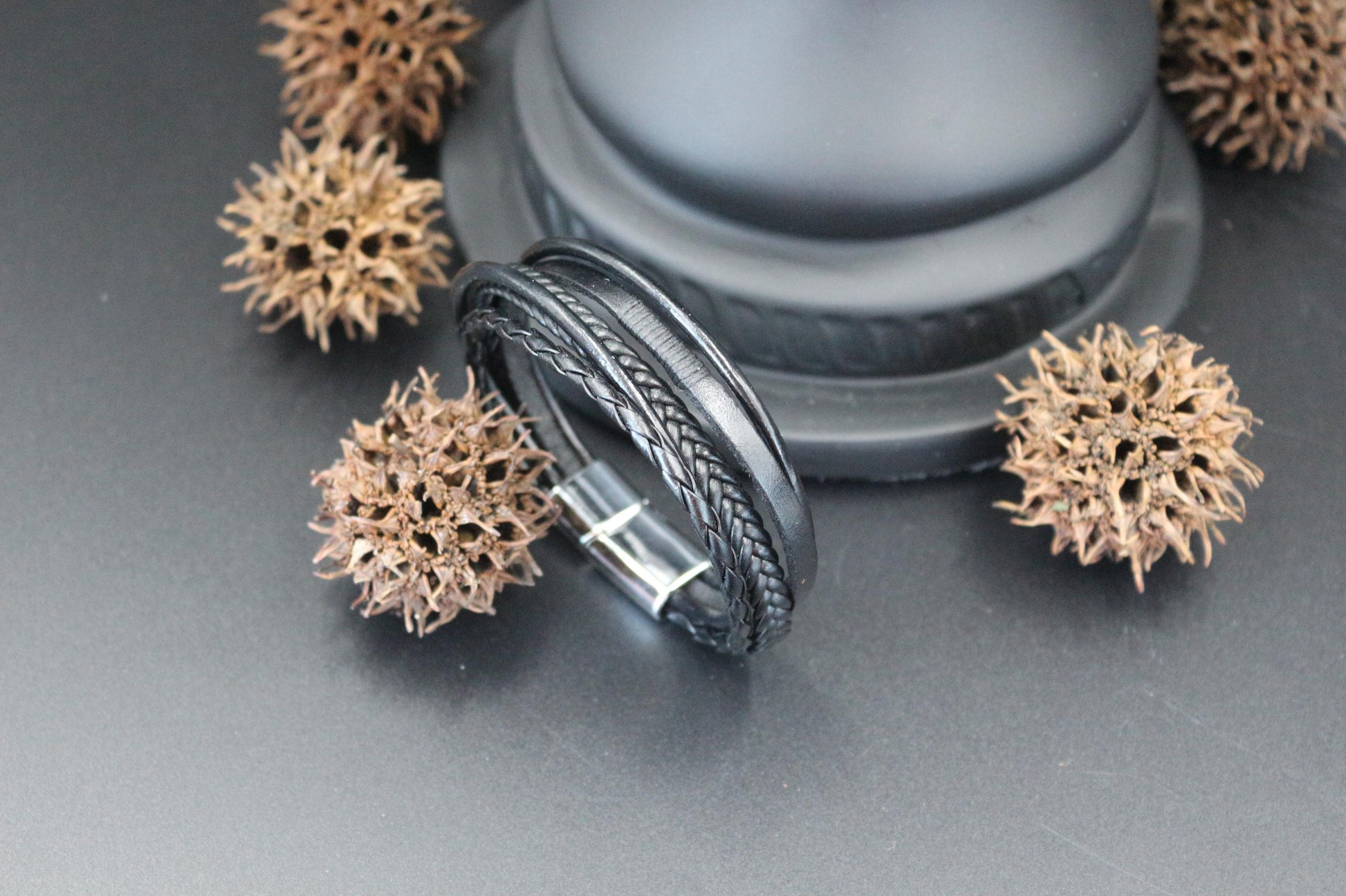 This stylish handmade men's bracelet combines the ruggedness of genuine leather with the elegance of braiding, creating a masculine and sophisticated accessory.